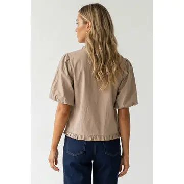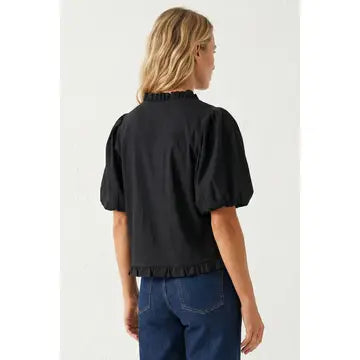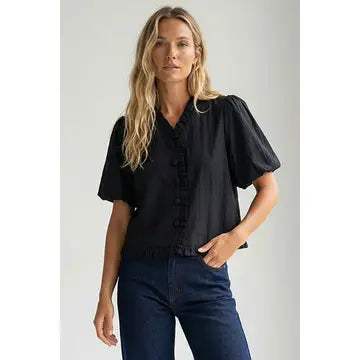 The Ava Top brings effortless elegance with its lightweight, textured fabric that feels soft against the skin. Feminine ruffle detailing enhances your silhouette while voluminous bubble sleeves create movement and dimension. The faux button enclosure delivers a polished, put-together finish. Wear it layered for depth or solo for understated sophistication—versatile enough for any occasion in your wardrobe.