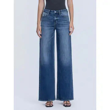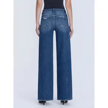 The Bailey Jeans deliver effortless style with a high-rise silhouette and comfortable stretch denim that moves with you all day. Featuring a seamless waistband for a smooth fit, subtle distressed detailing, and a polished finished hem, these dark wash wide-leg jeans offer a flattering full-length cut. Perfect for dressing up or down, they're a versatile wardrobe essential that combines timeless appeal with everyday wearability.