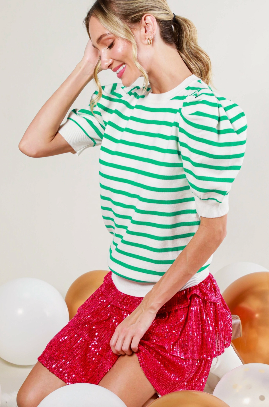 The Briley Top offers a comfortable, relaxed fit with a ribbed crew neckline and short puff sleeves finished with ribbed hems. Crafted for breathability and a soft touch, its pullover style makes it easy to wear all day. Perfect for those seeking effortless comfort without compromising on style.