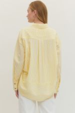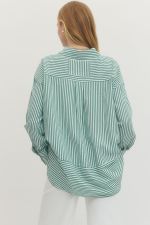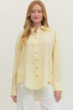 The Collins Top is a timeless striped long sleeve button-down crafted with a classic collared neckline and front button closure. Detailed button accents at the sleeves add refined sophistication to this versatile wardrobe essential. Perfect for layering or wearing solo, this piece transitions effortlessly from casual to polished occasions.