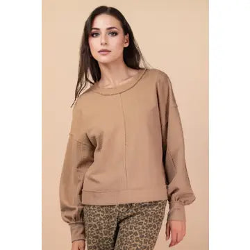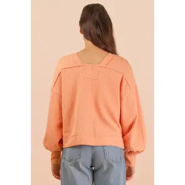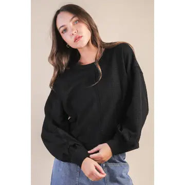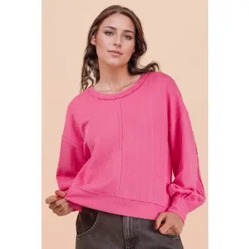 Meet your new favorite excuse to stay cozy all day long. The Leanna Top is that perfect blend of laid-back comfort and understated cool—oversized fit, buttery-soft knit fabric, and just enough personality with its raw edge details and textured finish. The back square neckline adds an unexpected twist, while dropped shoulders and side slits keep things interesting. Throw it on with your favorite jeans and call it a day. This is the knit top that actually feels as good as it looks.