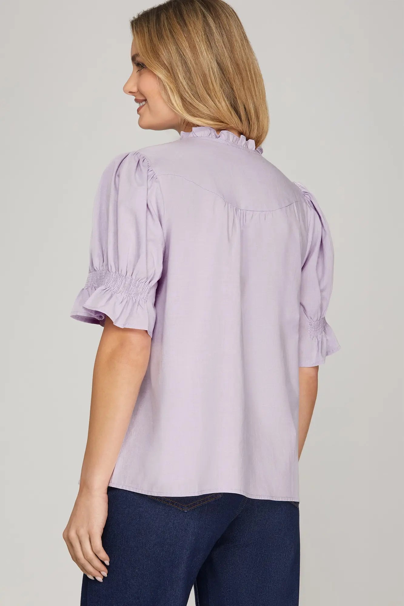 Effortless elegance meets everyday comfort in The London Top. This charming piece features delicate smocked sleeves that create a sophisticated layered effect. The shortened silhouette pairs perfectly with high-waisted bottoms for a polished, put-together look. Crafted for versatility, it transitions seamlessly from casual outings to weekend gatherings. A timeless wardrobe essential that brings a touch of refined style to any ensemble.