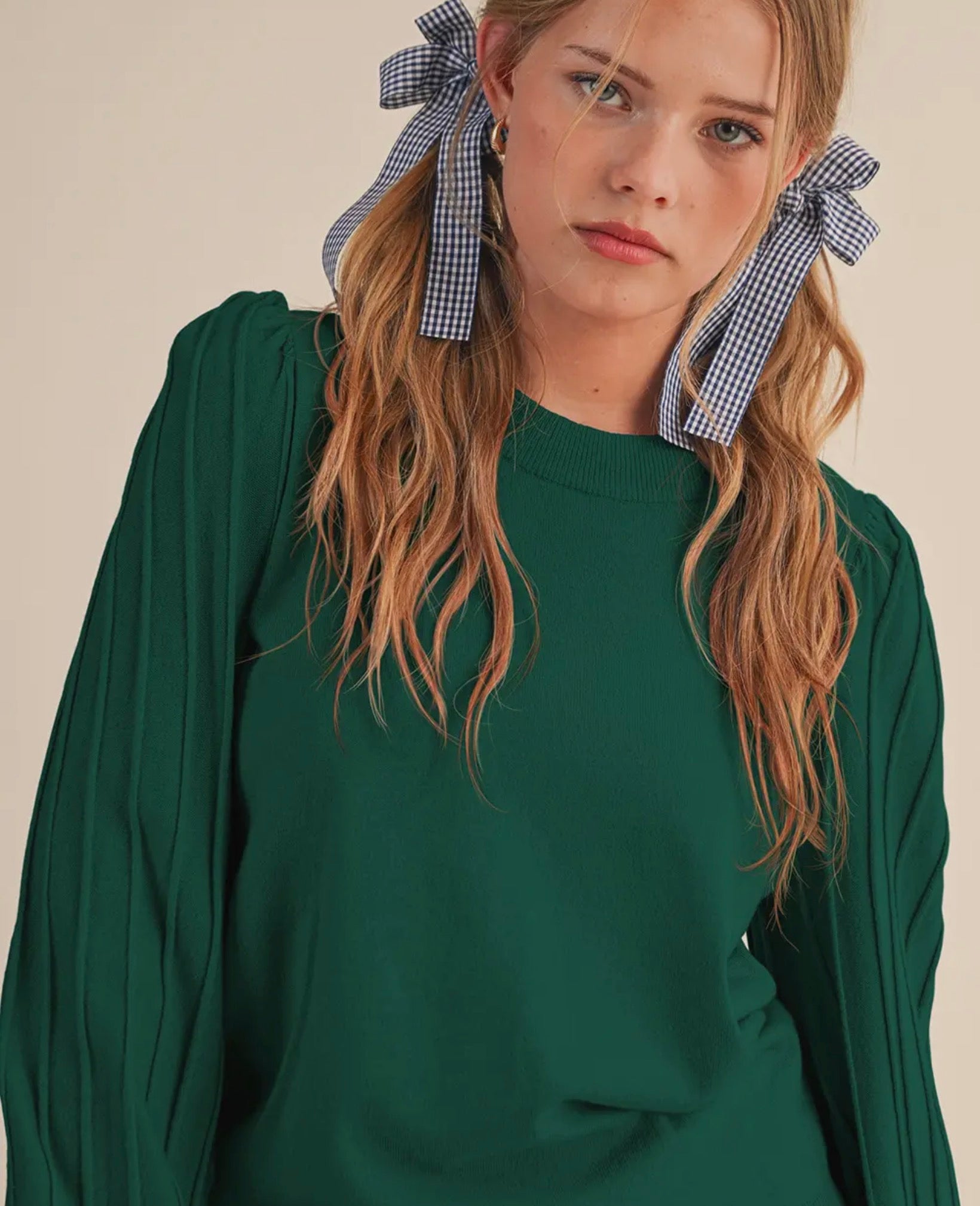Soft knit top with stripe textured sleeves