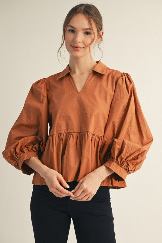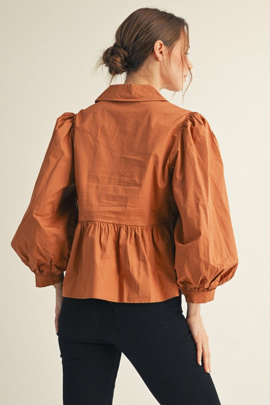The Wren Top is here to help you feel confident and put-together every day. With its classic collared neckline and flattering peplum design, this top works beautifully whether you're heading to work or out with friends. The 3/4 balloon sleeves strike the perfect balance between playful and professional, giving you a silhouette that feels both comfortable and intentional. Layer it, tuck it, or wear it as is—this piece supports your style journey and adapts to whatever your day brings.