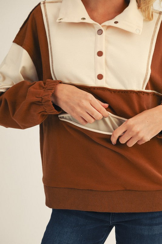 The Sutton Top is designed to work as hard as you do. Its relaxed drop shoulder fit moves with your body, while the color block design brings visual interest to your everyday rotation. Practical snap button closure and a secure front zipper pocket keep your essentials close, and the thoughtful reverse stitch detailing shows we've paid attention to every detail. A versatile piece that supports your lifestyle, whatever that looks like.