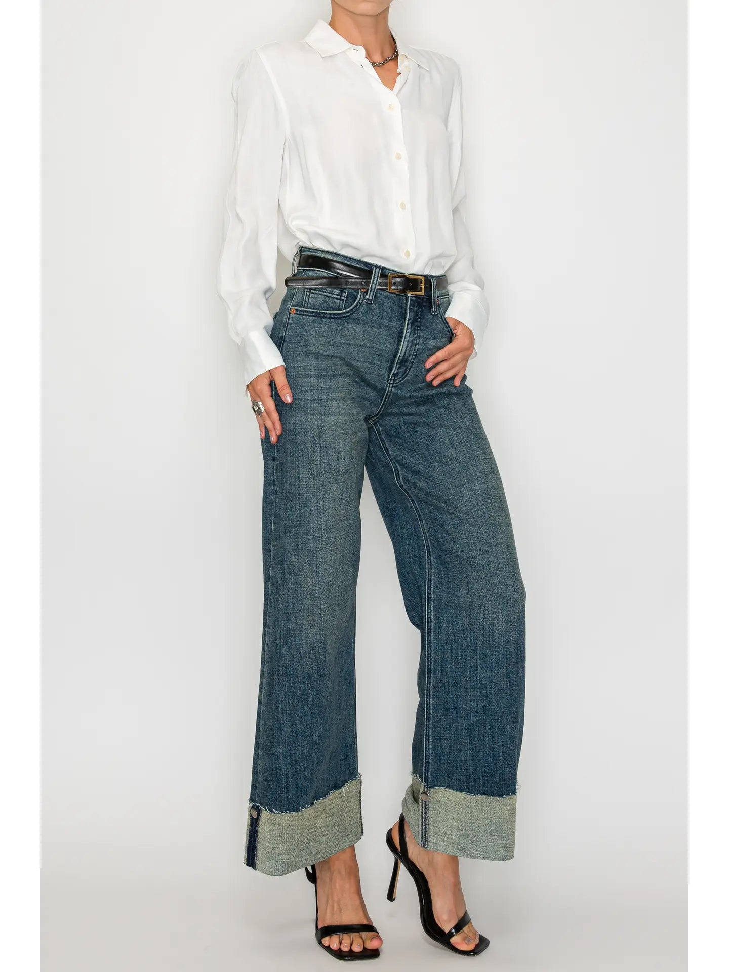 The Whitney Jeans are designed with you in mind. Hidden tummy control pockets anchored to the J-stitch gently smooth and support your midsection while keeping everything comfortable and natural-looking. The stretchy denim moves with your body, while the wide-leg silhouette flatters every frame. Finished with medium stonewash detailing, uncuffable cuffs, and a secure inseam transfer with snap button closure, these jeans deliver the all-day confidence and support you deserve. Feel good, look great.